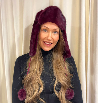 Alex•Max - Nicola Fur Hat With Pom Poms Burgundy