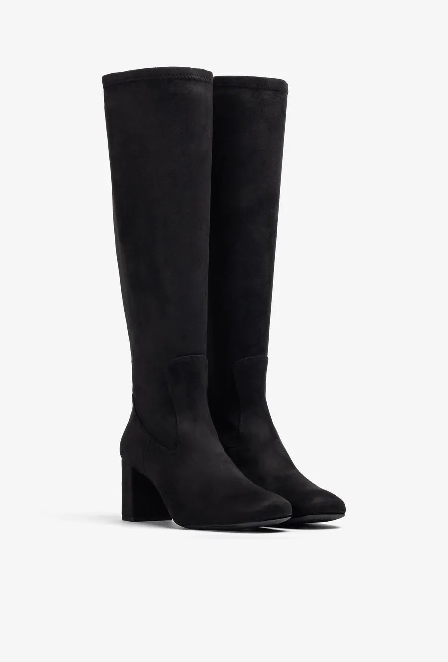 Tyylikkäät neliökärkiset saappaat pehmeästä mokkanahasta. Takavetoketju ja joustava varsi takaavat mukavan istuvuuden. Sävyyn sointuva 6 cm korko luo ryhtiä asuun. Kevyt sekä joustava kumipohja tarjoaa pitoa jokaiselle askeleelle.