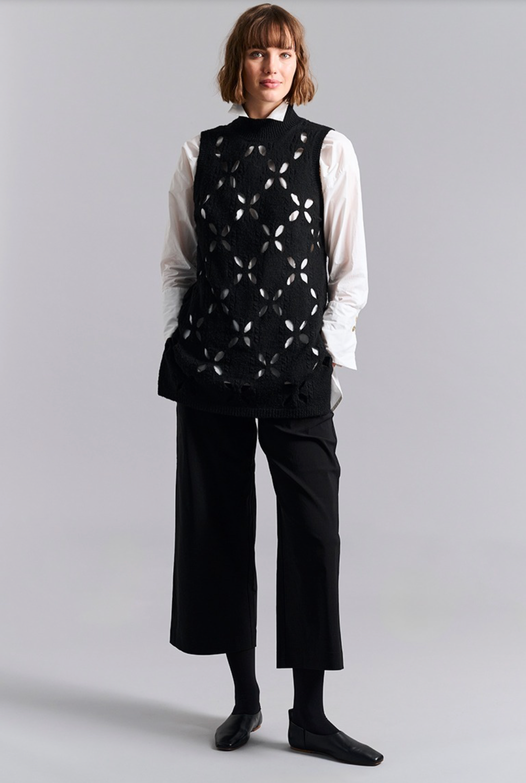 Hihaton Lantern-pusero on muodikas vaatekappale, jossa on persoonallinen reikäkuvio, joka paljastaa alta löytyvät kerrokset. Hienosti neulottu pusero tarjoaa sekä mukavuutta että tyyliä. Puseron monipuolisuus mahdollistaa sen käytön liivinä t-paidan, paidan tai istuvan puseron päällä, mikä luo kerroksellisen ja eksklusiivisen ilmeen.